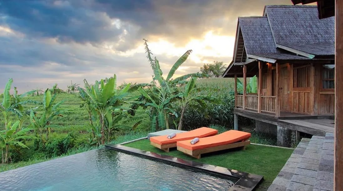 Imagine une villa balinaise, entre rizières et océan
